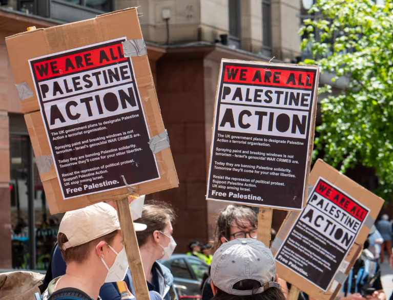 وكانت وزيرة الداخلية البريطانية، إيفيت كوبر، قد قدمت الأسبوع الماضي أمرًا إلى البرلمان يقضي بإدراج "فلسطين أكشن" ضمن قائمة المنظمات الإرهابية، إلى جانب تنظيمات مثل "القاعدة" و"داعش" و"العمل الوطني". ووفقًا للأمر، فإن الانضمام إلى الحركة أو الدعوة لدعمها سيُعد جريمة جنائية قد تصل عقوبتها إلى السجن 14 عامًا.