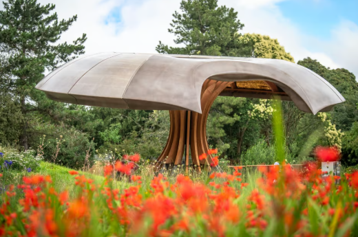 وفي قلب الحديقة يقع جناح مستوحى من الفطريات بسقف مائل يوجه مياه الأمطار إلى حديقة الأمطار، وتُستخدم هذه المساحة المغطاة في استقبال الزيارات المدرسية وتنظيم الأنشطة المجتمعية. كما تتضمن الحديقة مراعي وأسيجة نباتية محلية ومروجًا من الزهور البرية.