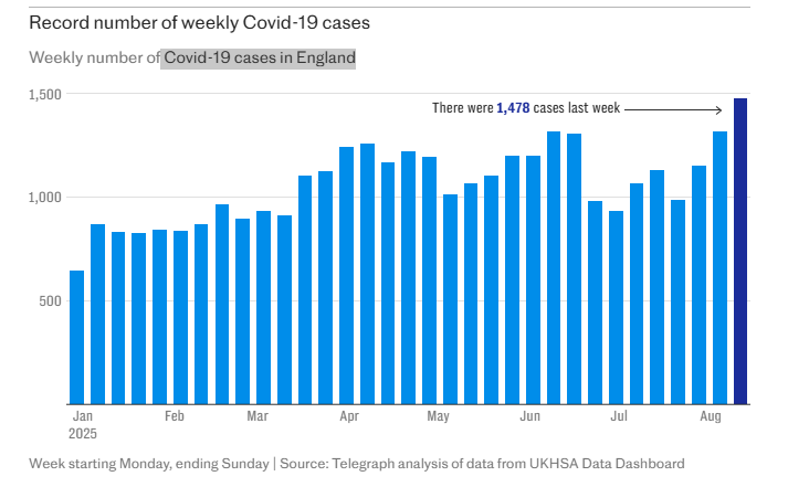 كشفت بيانات جديدة أن حالات الإصابة بكوفيد-19 في المملكة المتحدة قفزت إلى أعلى مستوياتها هذا العام، على الرغم من اجتياح البلاد موجة حر صيفية.