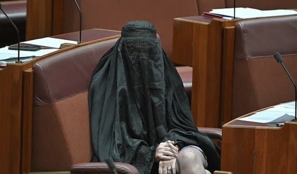 أثار تصرّف السيناتورة اليمينية المتطرفة بولين هانسون جدلاً واسعاً في مجلس الشيوخ الأسترالي بعد دخولها القاعة وهي ترتدي النقاب احتجاجاً على رفض السماح لها بتقديم مشروع قانون يحظر أغطية الوجه الكاملة في الأماكن العامة.