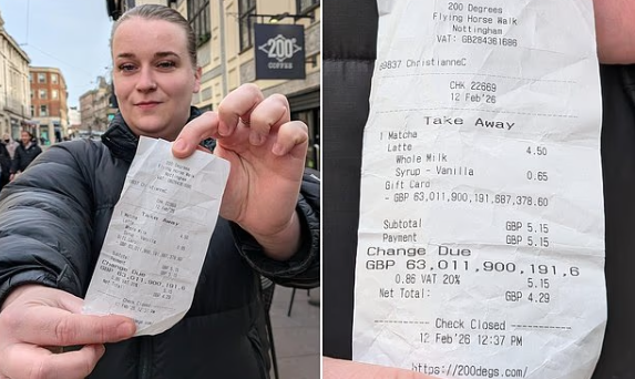 تحولت زيارة عادية إلى مقهى في نوتنغهام إلى واقعة طريفة، بعدما أظهر إيصال بطاقة هدايا بقيمة 10 جنيهات إسترلينية رصيدًا فلكيًا بلغ 63 كوادريليون جنيه إسترليني، ما جعل صاحبته تبدو – على الورق – وكأنها أغنى امرأة في العالم.