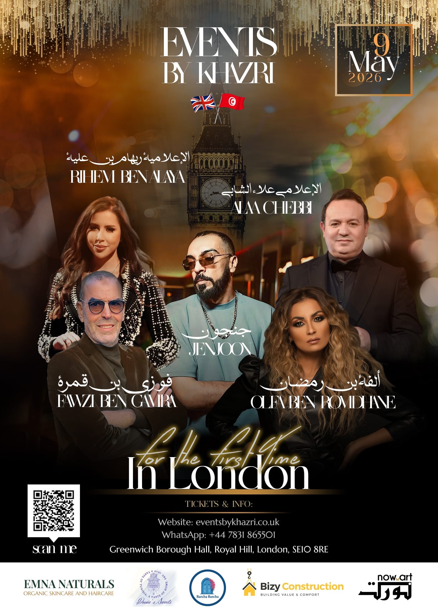 ويقدّم الحفل الثنائي الإعلامي علاء الشابي وريهام بن علية، في أمسية تهدف إلى نقل أجواء تونس الفنية إلى قلب لندن.