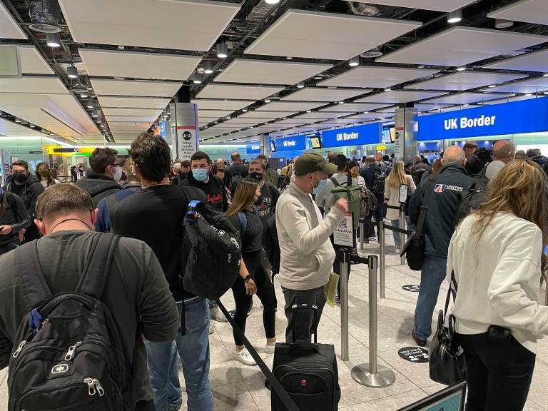 أعرب المسافرون في مطار هيثرو عن قلقهم الشديد من الإصابة بكورونا أثناء الانتظار طويلا في الطوابير. وتظهر صور نشرت يوم أمس لمطار هيثرو مشاهد ازدحام كبيرة جداً، ويأتي ذلك بالتزامن مع استئناف السفر الدولي في المملكة المتحدة.