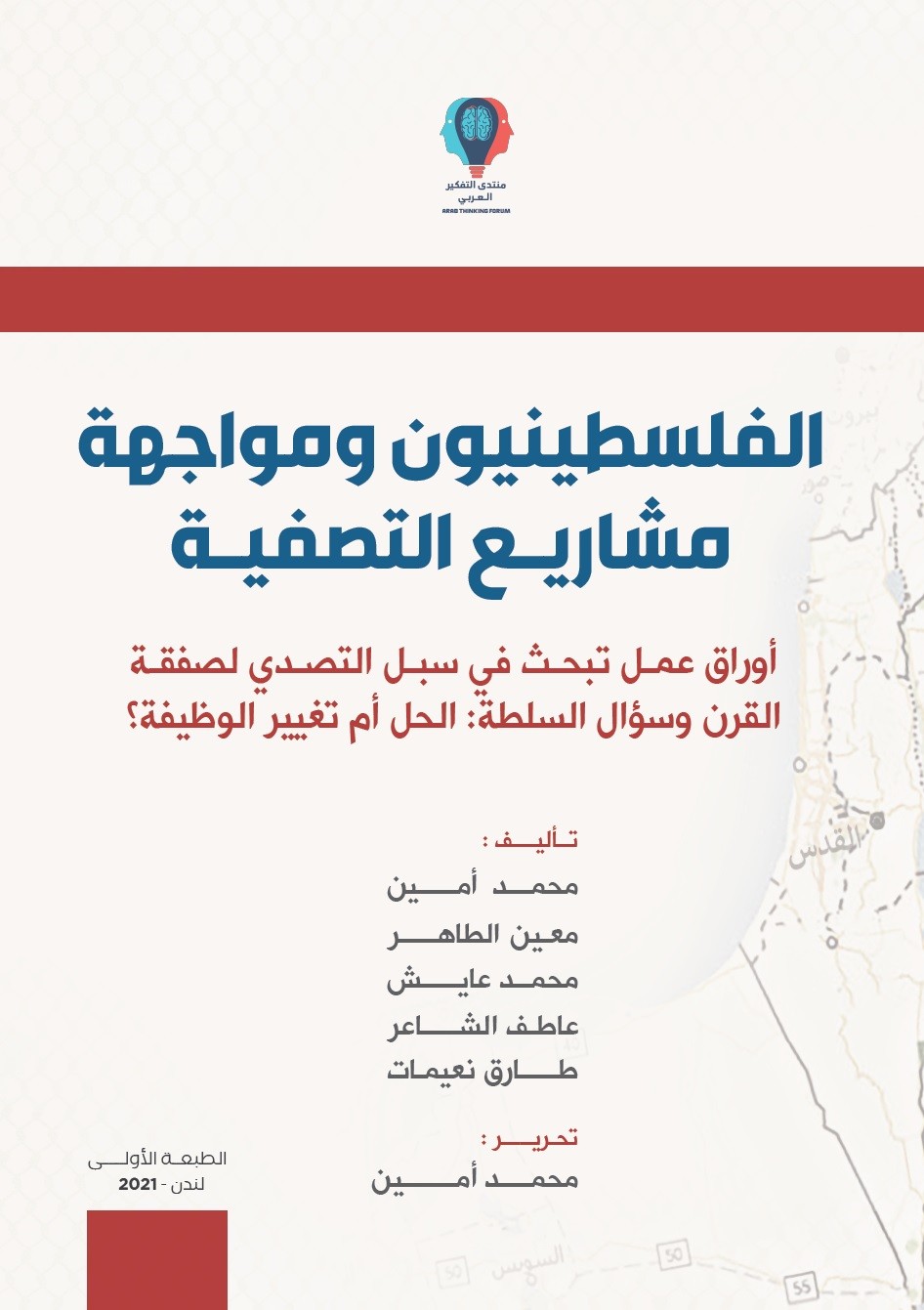 وصدر الكتاب تحت عنوان (الفلسطينيون ومواجهة مشاريع التصفية)، وهو عبارة عن مجموعة من أوراق العمل التي تبحث في سبل مواجهة التحديات الجديدة التي تواجه القضية الفلسطينية، حيث قام مجموعة من الباحثين بكتابة هذه الأوراق البحثية، وهم: رئيس منتدى التفكير محمد أمين والذي قام أيضاً إضافة الى إعداد واحدة من أوراق العمل بتحرير الكتاب ومراجعته وإعداده للنشر.