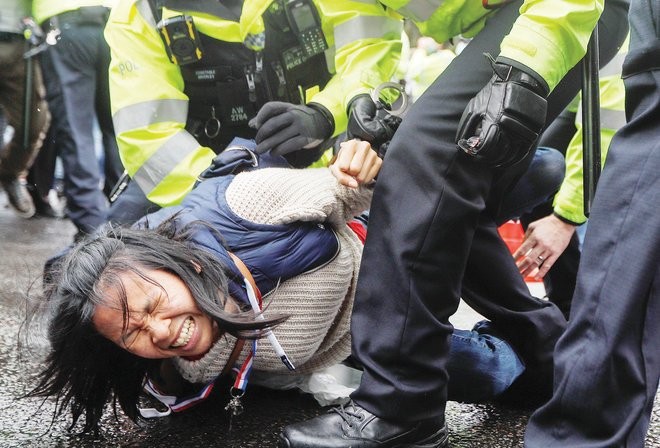 ألقت شرطة العاصمة البريطانية لندن، أمس، القبض على ثمانية محتجين أثناء مظاهرة قام بها المئات بالقرب من مقر مجلس العموم (البرلمان) احتجاجا على إرجاء موعد رفع حالة الإغلاق العام المفروضة جراء تفشي وباء فيروس كورونا (كوفيد-19) لمدة شهر.