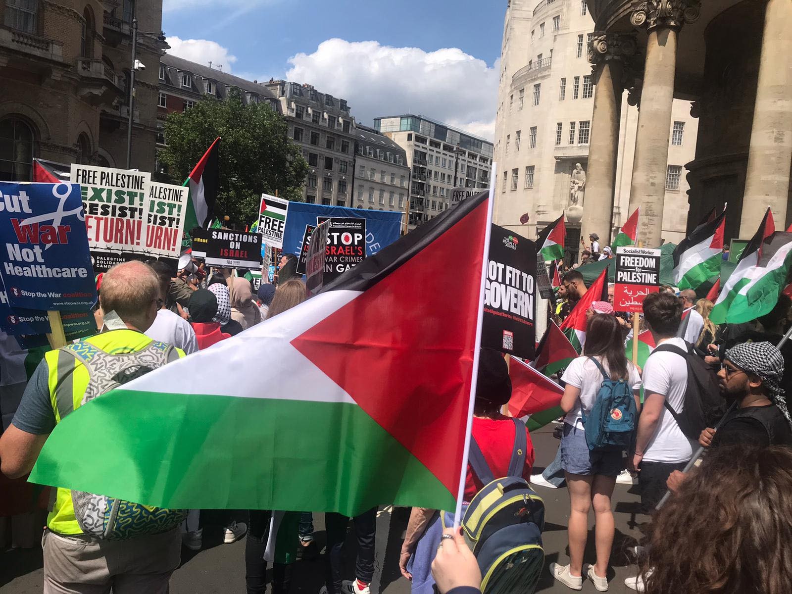 انطلقت قبل قليل مظاهرة من أمام مقر "BBC" في لندن، وسيتجه المتظاهرون نحو البرلمان البريطاني للمطالبة بالعدالة والحرية لفلسطين ضمن مظاهرة وطنية ينظمها تحالف "التجمع الشعبي البريطاني "People’s Assembly".