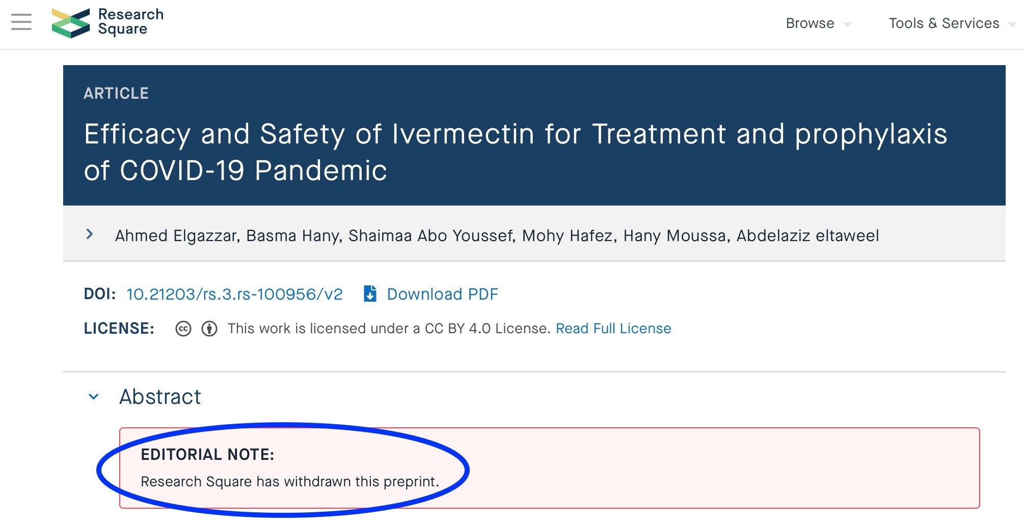 وبحسب صحيفة "The Guardian" أجرى باحثون مصريون دراسة طبية تدعي أن عقار "إيفرمكتين Ivermectin" فعال في علاج كورونا المستجد. ونشرت عبر موقع "Research Square" في نوفمبر الماضي، لتخضع للمعاينة والمراجعة من قبل علماء آخرين متخصصين.