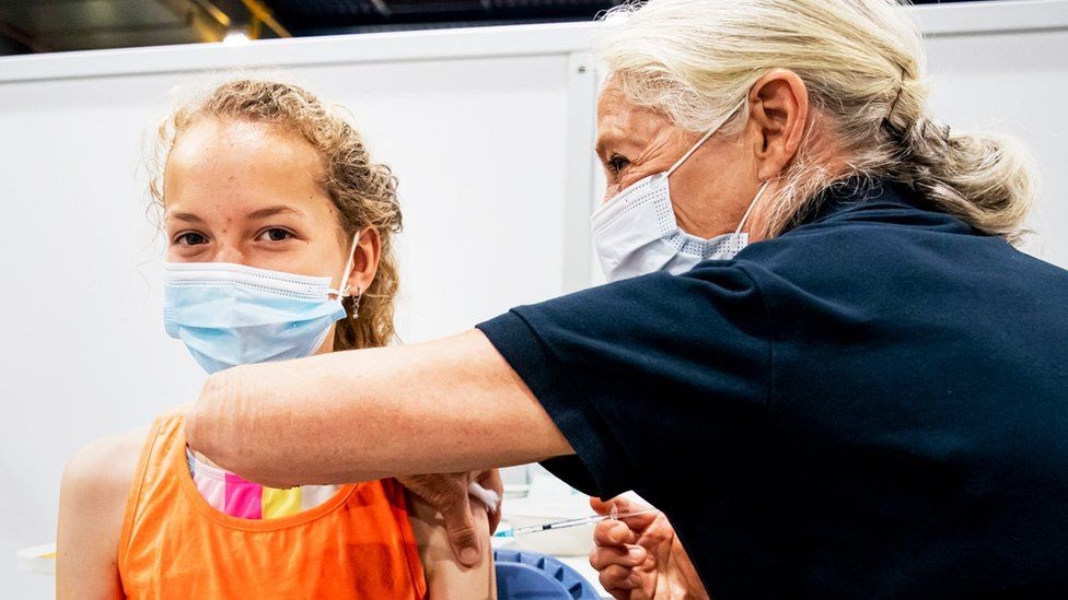 قال كبار المسؤولين الطبيين في المملكة المتحدة إنه يجب تقديم جرعة واحدة من لقاح فايزر لجميع الأطفال الذين تتراوح أعمارهم بين 12 و 15 عامًا. ومن المتوقع أن تتم دعوة الشباب في إنجلترا للحصول على اللقاح الأسبوع المقبل. إلا أنه لم يتم تأكيد ذلك بالنسبة لاسكتلندا وويلز وأيرلندا الشمالية.
