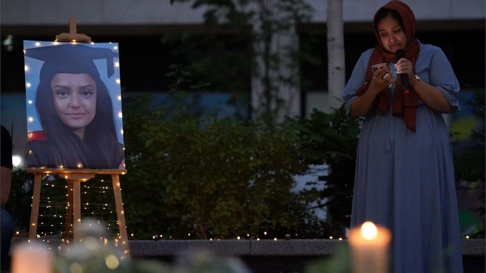 وانهارت شقيقة سابينا نيسا "جبينا ياسمين إسلام"، وهي تخاطب الحشود في الوقفة الاحتجاجية. وقالت: "أريد فقط أن أقول شكراً لكل من جاء اليوم لإظهار التضامن مع أختي".