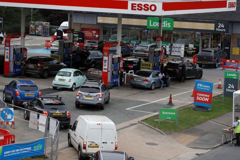 لجأ البريطانيون لـ "الشراء بدافع الذعر" بسبب أزمة نقص الوقود في بريطانيا خلال الأيام الماضية. في الوقت الذي بدأت فيه الحكومة البريطانية بوضع خطط عاجلة في محاولة منها للسيطرة على الأزمة. حيث قررت الحكومة الاستعانة بالجيش للقيام بعمليات توصيل الوقود لمحطات التعبئة.