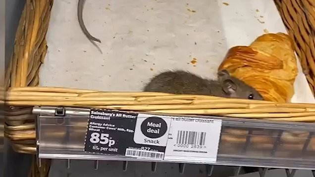 وثق مصور بريطاني لحظة "مثيرة للاشمئزاز" لجرذان تزحف فوق المعجنات الطازجة في أحد فروع متجر "Sainsbury's".