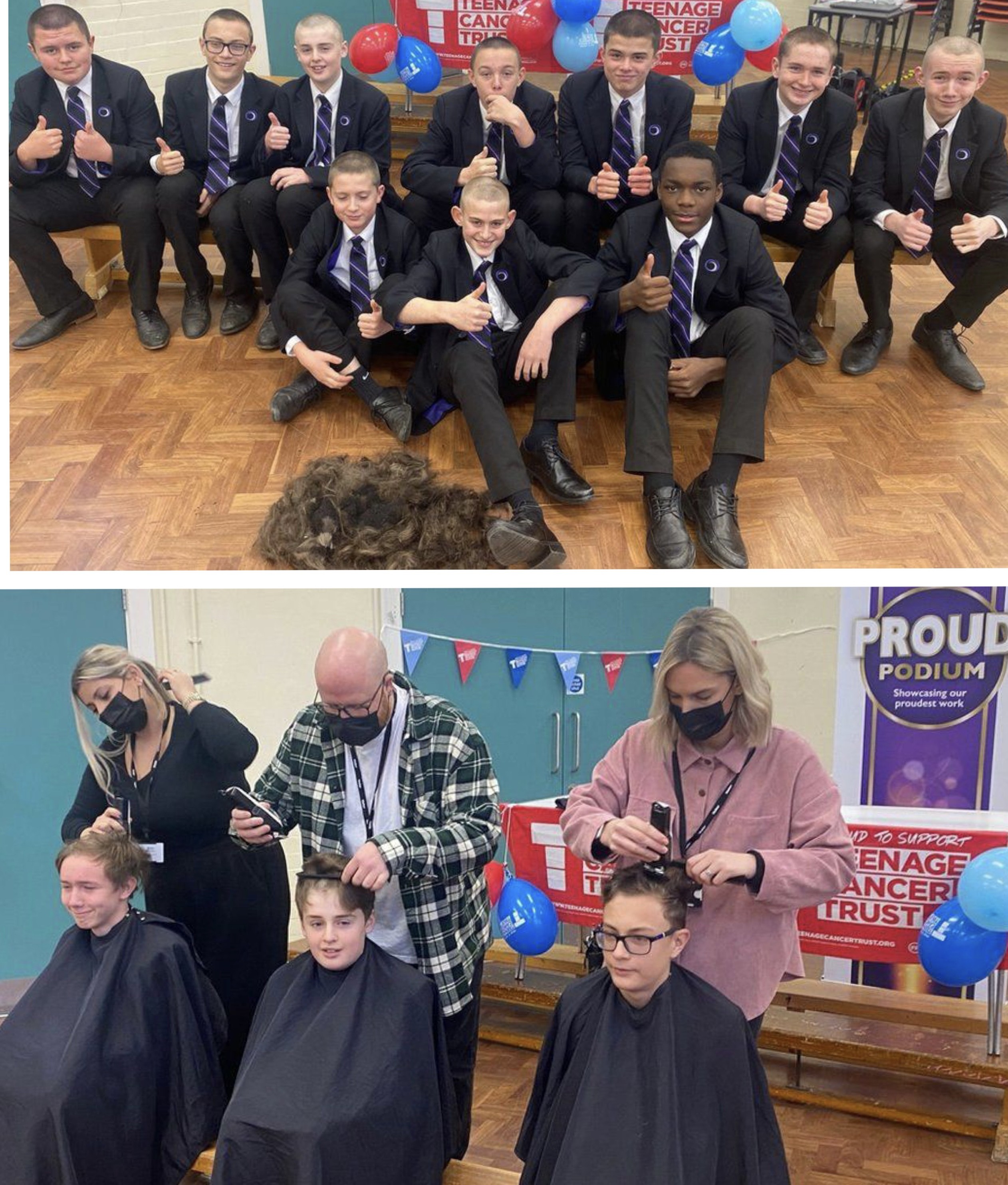 قام 10 طلبة من الصف التاسع في أكاديمية Outwood Hasland Hall ، في تشيسترفيلد بحلق رؤوسهم، من أجل دعم زميلهم الذي أصيب بالسرطان.