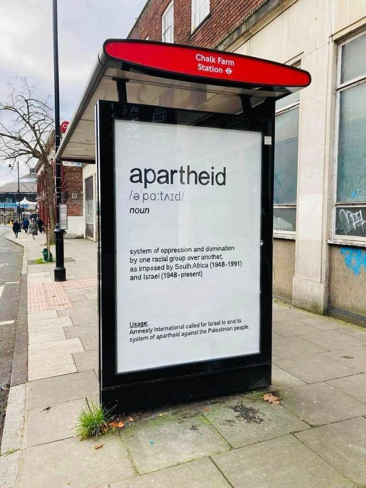 انتشرت في الآونة الأخيرة لافتات في شوارع لندن تحمل شرحاً لمعنى كلمة "ابارتهايد" - "فصل عنصري".