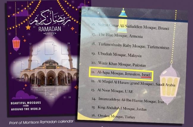 سحبت سلسلة متاجر Morrisons في المملكة المتحدة أجندة تقويم رمضان التي تباع في المحلات والتي تذكر أن المسجد الأقصى يقع في إسرائيل.