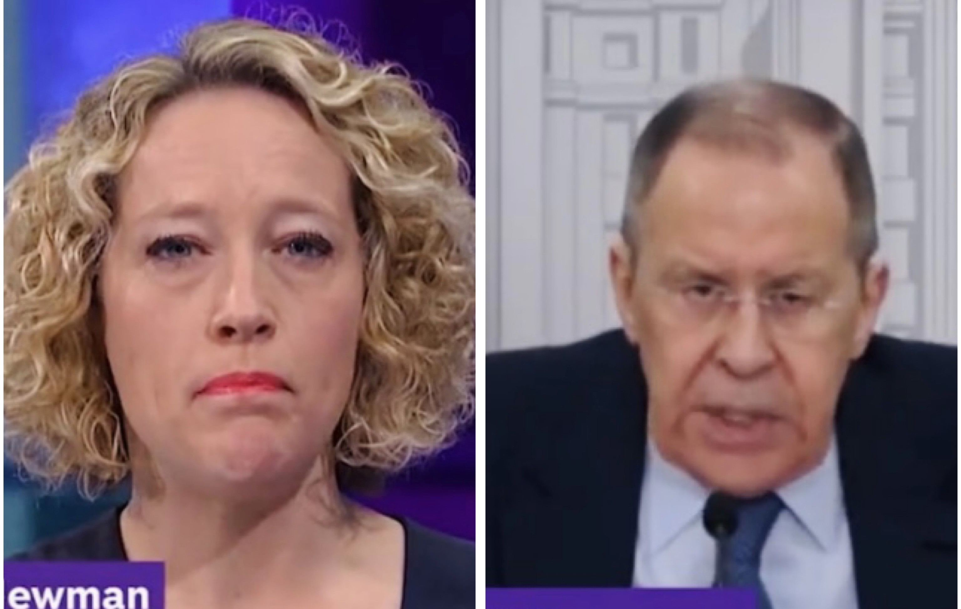 سألت مذيعة القناة الإخبارية الرابعة البريطانية كاثي نيومان وزير الخارجية الروسي سيرغي لافروف قائلة: "أود أن أسألك عن طالبة كانت في سنتها الدراسية الأخيرة قتلت بالرصاص الروسي بينما كانت في السيارة مع عائلتها في كييف، وأعرف أنه لديك ابنة، أريدك أن تنظر في عيني وتقول لي كيف تنام الليل وأنت تعرف أن الرصاص والقنابل الروسية يقتلان الأطفال؟"