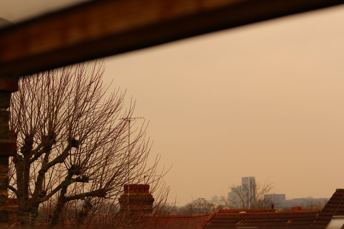 وبحسب صحيفة "Metro" تتعرض جميع أنحاء بريطانيا لطقس غير مستقر بسبب سحابة غبار صحراوية تشق طريقها عبر أوروبا. وجاء ذلك بعد أن غطت السحابة أجزاء من جنوب إسبانيا، وجزءا من سماء فرنسا وسويسرا.