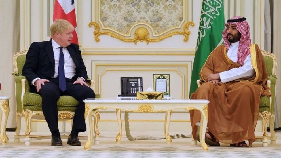 والرياض ثاني محطات جولة خليجية شملت دولة الإمارات أيضا، يسعى فيها جونسون بشكل أساسي إلى حث الدول المنتجة للنفط على المساعدة في خفض الأسعار بعد الأزمة الروسية الاوكرانية.