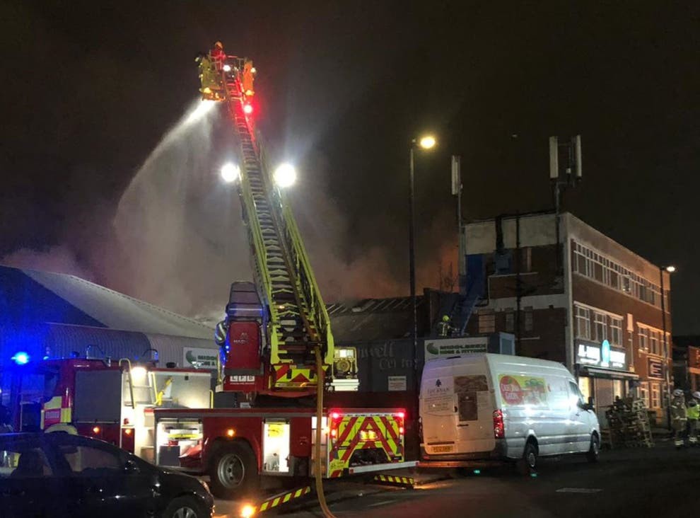 وأظهرت صور من فريق إطفاء الحريق بلندن تصاعد الدخان من المخبز الصناعي ولهب برتقالي يضيء الموقع على طريق مينيرفا في الساعات الأولى