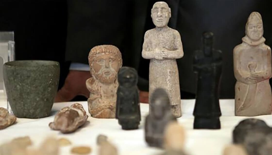 وعثر مع المتهم الآخر على عشر قطع أثرية أ خذت كما القطع الأخرى من موقعين أثريين في جنوب العراق عائدان للحضارة السومرية.