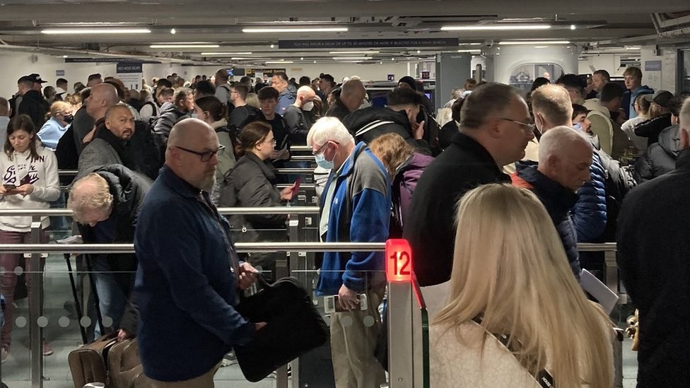 واجه المسافرون في مطاري غاتويك ومانشستر اليوم الثلاثاء طوابير انتظار طويلة، واشتكى المسافرون من التأخيرات التي وصلت حتى أربع ساعات.