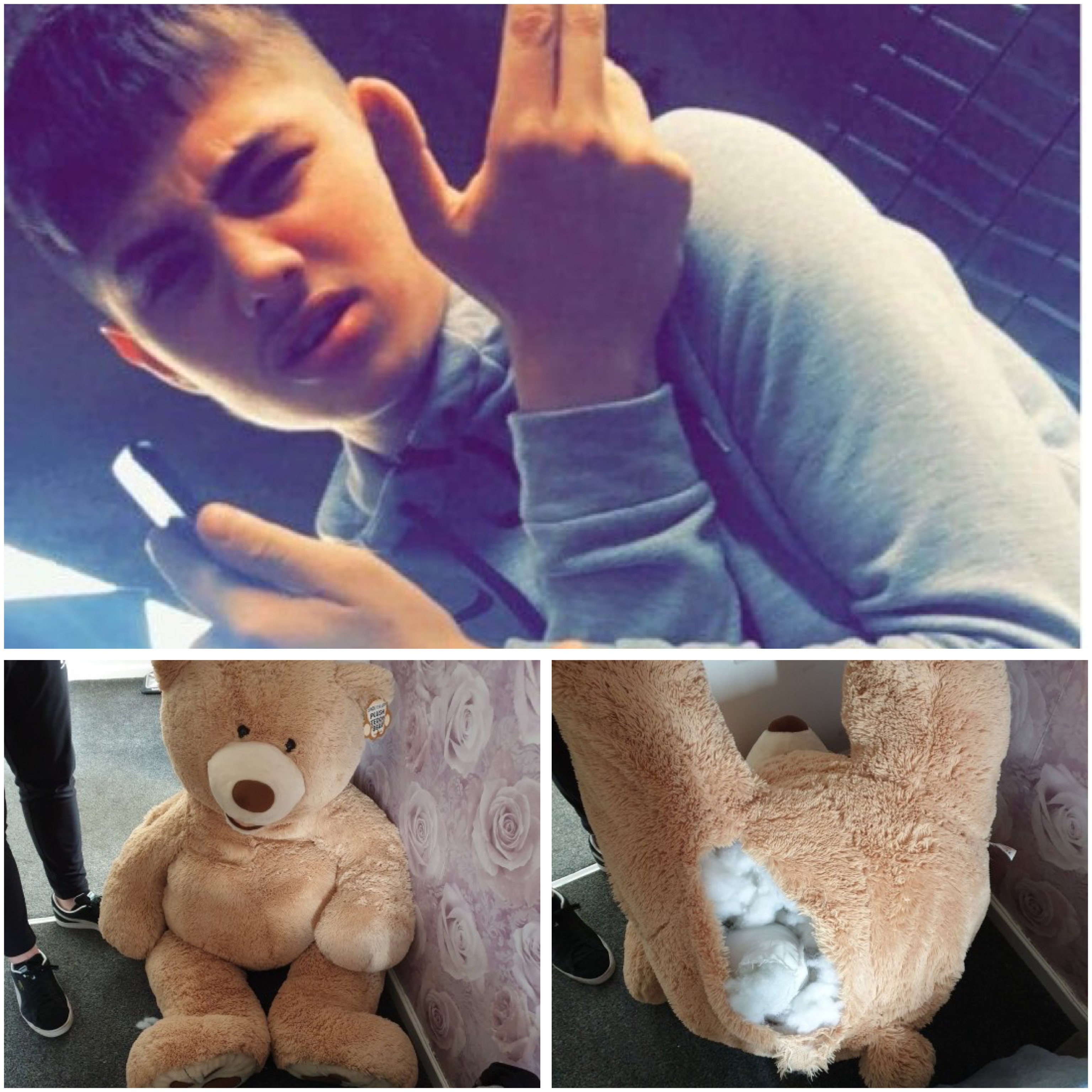 حاول المراهق البريطاني، جوشوا دوبسون، البالغ من العمر 18 عامًا، الملاحق من قبل الشرطة الاختباء في دمية دب كبيرة يبلغ طوتها متر ونصف.