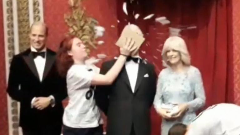 لطخ متظاهرون من حركة "أوقفوا النفط" تمثال الملك تشارلز الثالث الشمعي في متحف مدام توسو بكعكة شوكولاتة، وفقا لما نقلته "مترو".