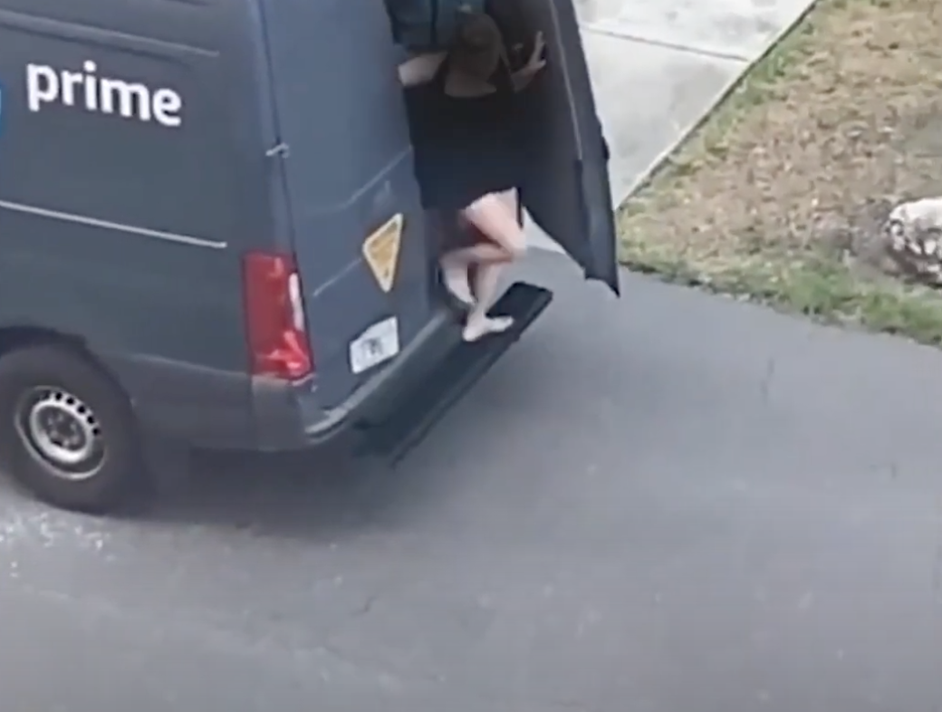 ثم شوهد عامل التوصيل، وهو يمسك الباب مفتوحًا حيث تم رصد المرأة وهي تغادر الشاحنة. وبعد أن تسبب مقطع الفيديو جدلاً واسعاً قررت أمازون فصل العامل.