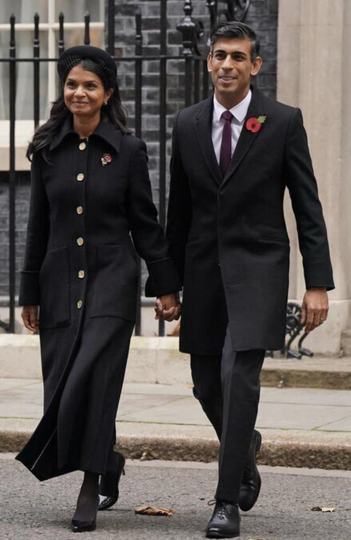 شاركت، أكشاتا مورثي، زوجة رئيس الوزراء البريطاني، ريشي سوناك، في إحياء ذكرى العسكريين والمدنيين البريطانيين والكومنولث في الحروب العالمية.
