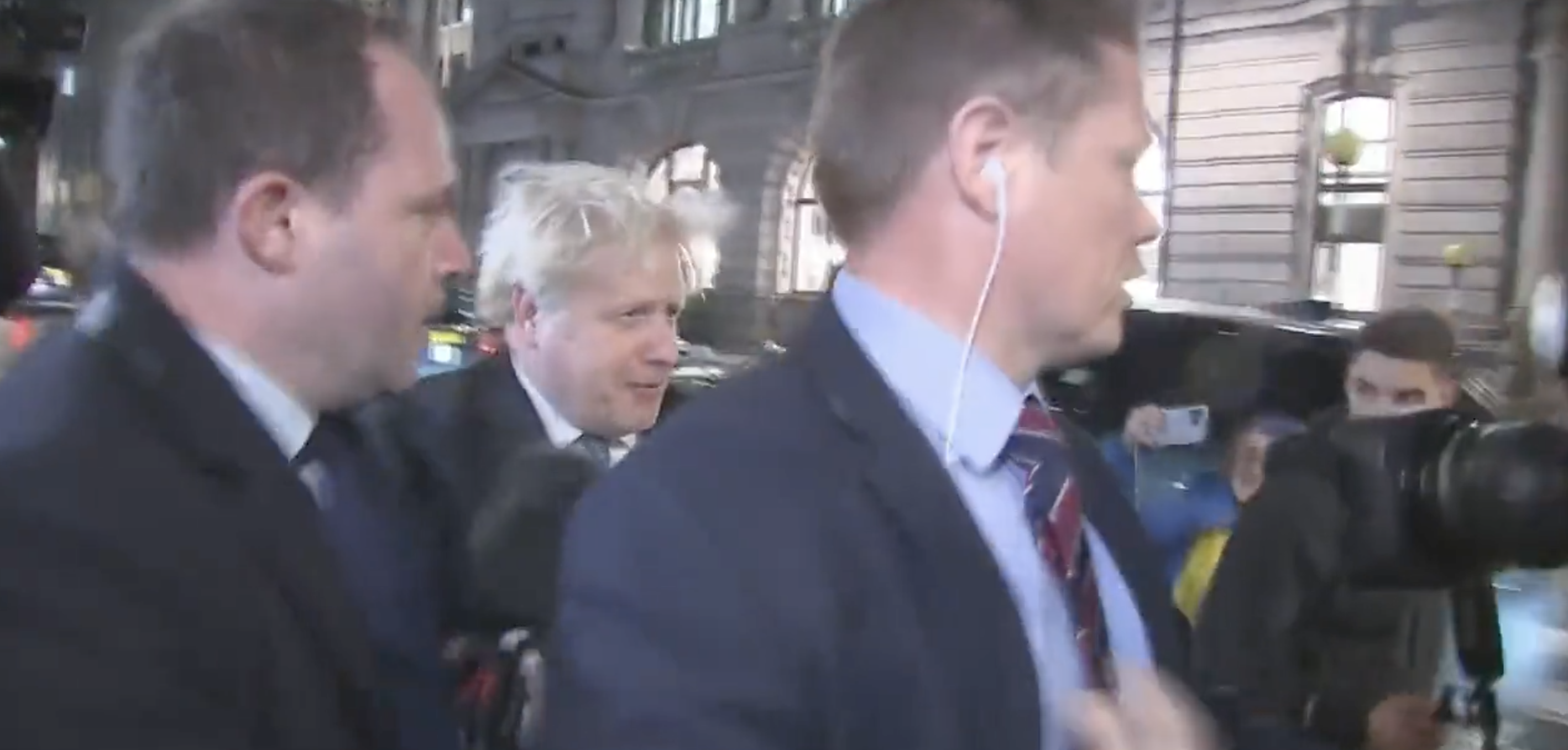 صورت كاميرات الصحافة البريطانية بوريس جونسون، وهو يتهرب من تساؤلات الصحافة عن الفضيحة الجديدة المتعلقة باحتفالات مقر رئاسة الحكومة البريطانية "بارتي غيت"، حيث سأله صحافي عن سبب سخريته ومزاحه المزعوم عندما قال "هذه أكثر الحفلات مراعاة لقواعد التباعد الاجتماعي في المملكة المتحدة".