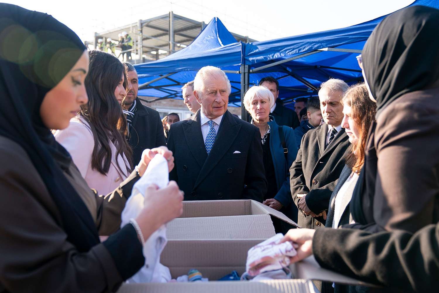 وتحدث الملك مع متطوعين مع جمعية "متطوعي غرب لندن الأتراك - WLTV" خلال قيامهم بتعبئة طرود بالأوشحة والبطانيات والبسكوت كجزء من الجهود لإغاثة المتضررين من الزلزال.