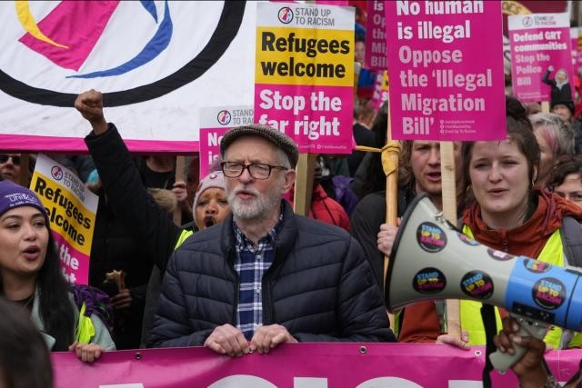 شارك رئيس حزب العمال البريطاني السابق، جيرمي كوربن في تظاهرة أقيمت في لندن احتجاجا على مشروع قانون الهجرة الذي وصف بأنه غير قانوني.