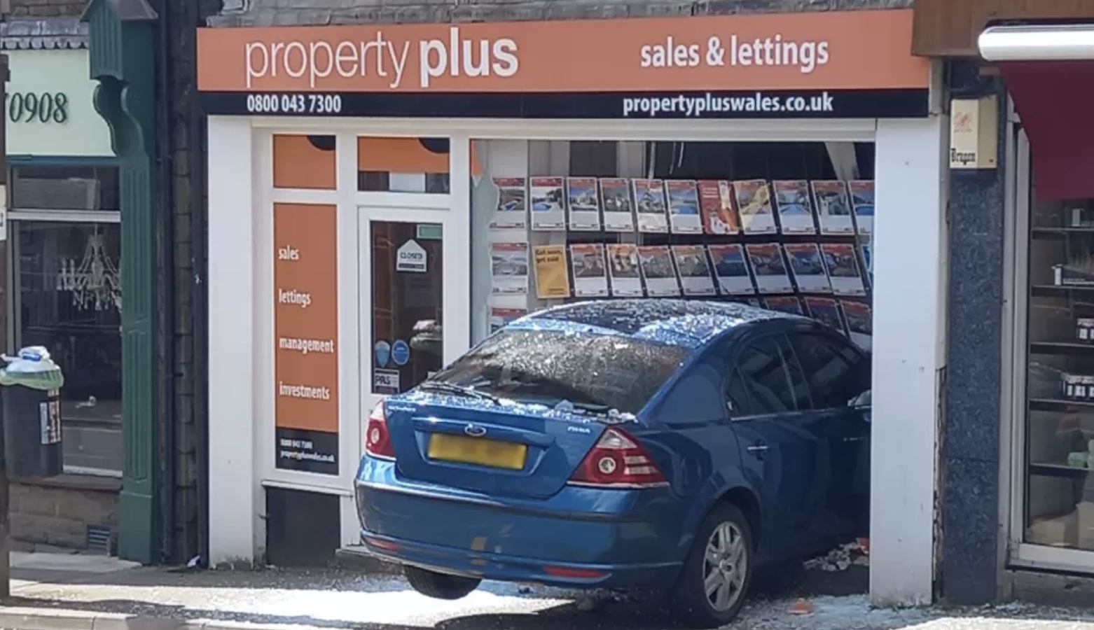 تداولت صحف ووكالات بريطانية صورة لسيارة فورد فاجأت المارة في بلدة جنوب ويلز، حيث اقتحمت السيارة مبنى لمكتب عقارات.