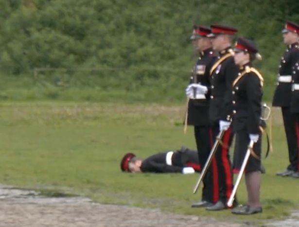 وبحسب صحيفة ميرور "Mirror" اضطر رجلان يرتديان زي الجيش إلى جر جندي كان من بين الجنود الذين قدموا تحية البندقية في قلعة كارديف في ويلز، صباح يوم أمس السبت. حيث سقط فجأة إلى الأمام على وجهه في التراب.
