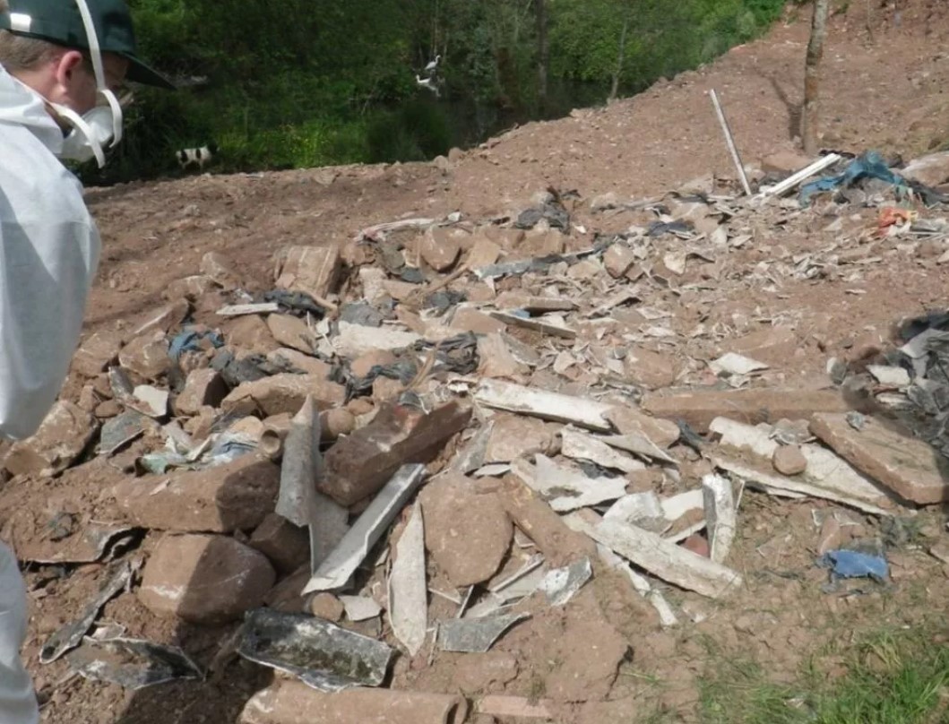 وتم حفر ثقوب في الموقع كشفت عن أنواع مختلفة من الأسبستوس المدفون على الأرض - بعضه من النوع الأكثر "ضارًا"، فيما اعترف جاريت بتلقي مدفوعات نقدية من الأشخاص الذين يلقون النفايات وتجنب الطرق القانونية للتخلص من الأسبستوس القاتل بالإضافة إلى نفايات الهدم والبناء.