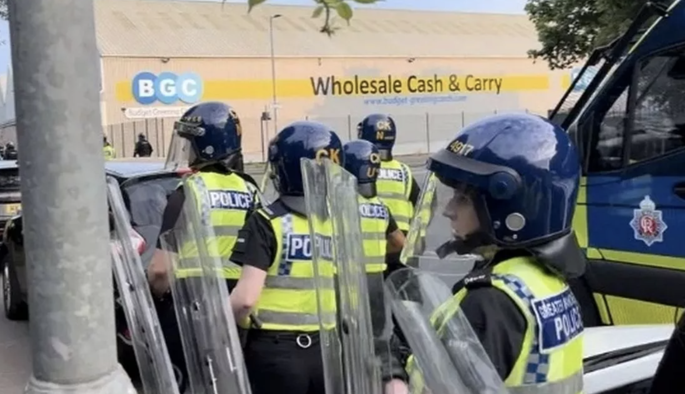 وصرح متحدث باسم شرطة مانشستر الكبرى: "في حوالي الساعة 6 مساءً، تلقينا تقارير عن تظاهرة في شارع أولدهام في نيوتن هيث. تم إرسال دوريات محلية مدعومة بوحدات متخصصة، وفُرِّقَت المجموعة بعد أن ألقت أشياء على الشرطة والجمهور. بفضل التدخل السريع من ضباطنا، لم تتسبب هذه السلوكيات الإجرامية في إصابات أو أضرار خطيرة."