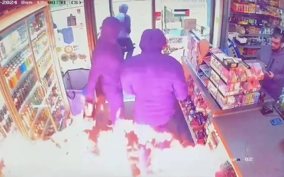 واقتحم ثلاثة رجل متجر "GoLocal" التابع لشركة "Zaf" في مانشستر قبل أن يسكبوا الوقود على النار بقصد إضرام النار في المكان، يوم الأحد.