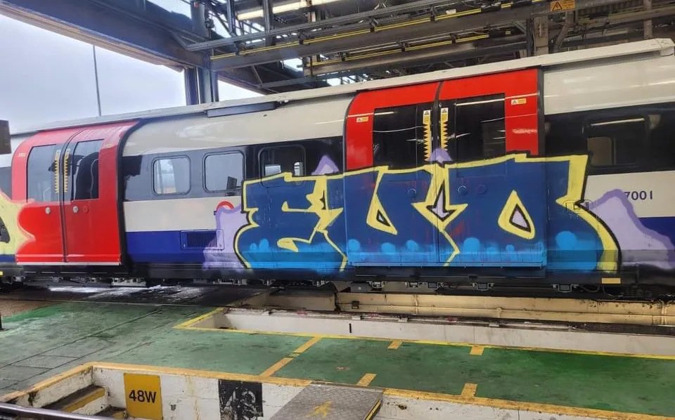 وقام عدد من الفنانين برسم "الغرافيتي" على عدة عربات من قطار خط بيكاديللي أثناء نقله من الشركة المصنعة إلى مستودعه في الساعات الأولى من صباح يوم الإثنين.
