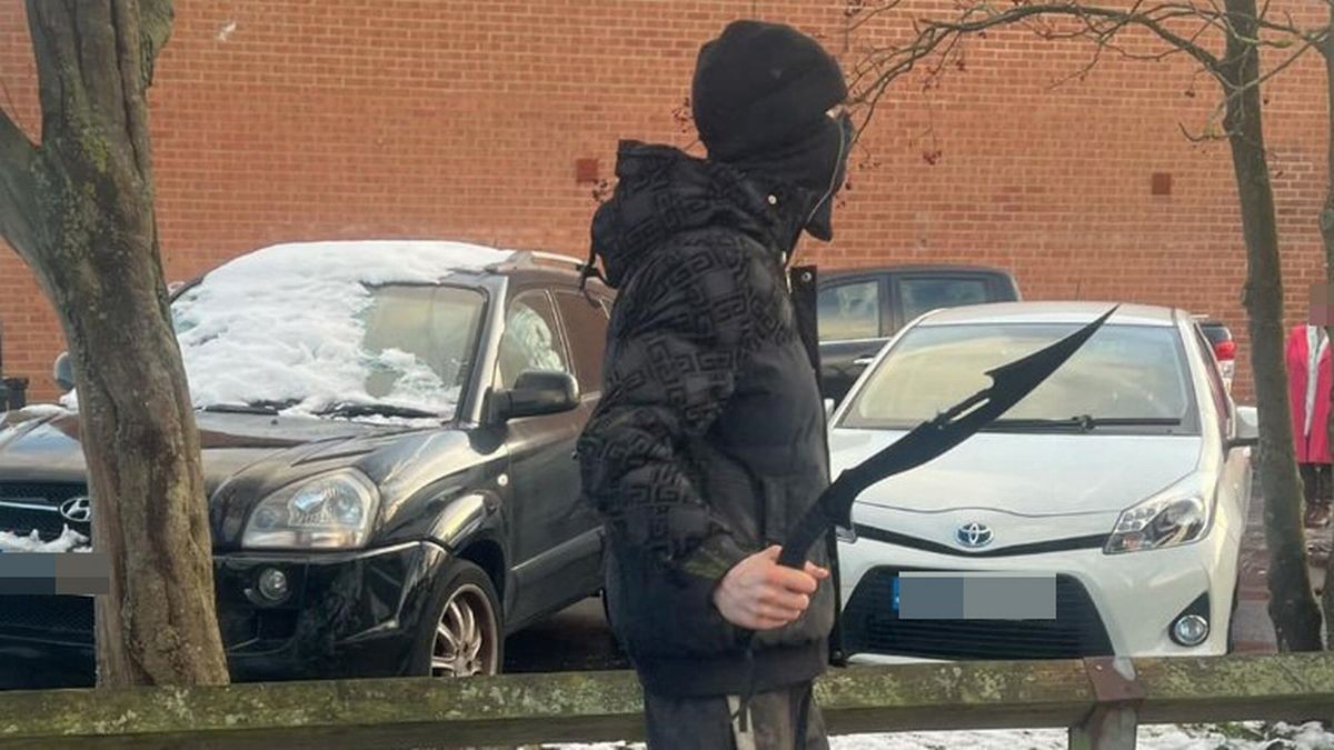 ويظهر المقطع المنشور على وسائل التواصل الاجتماعي، رجلاً ملثماً يرتدي معطفاً أسوداً وساتراً للوجه (بالاكلافا)، وهو يسير في شارع سكني مغطى بالثلوج، بجانب صف من السيارات المتوقفة، بينما يحمل السكينين الذين وجههما نحو المارة.