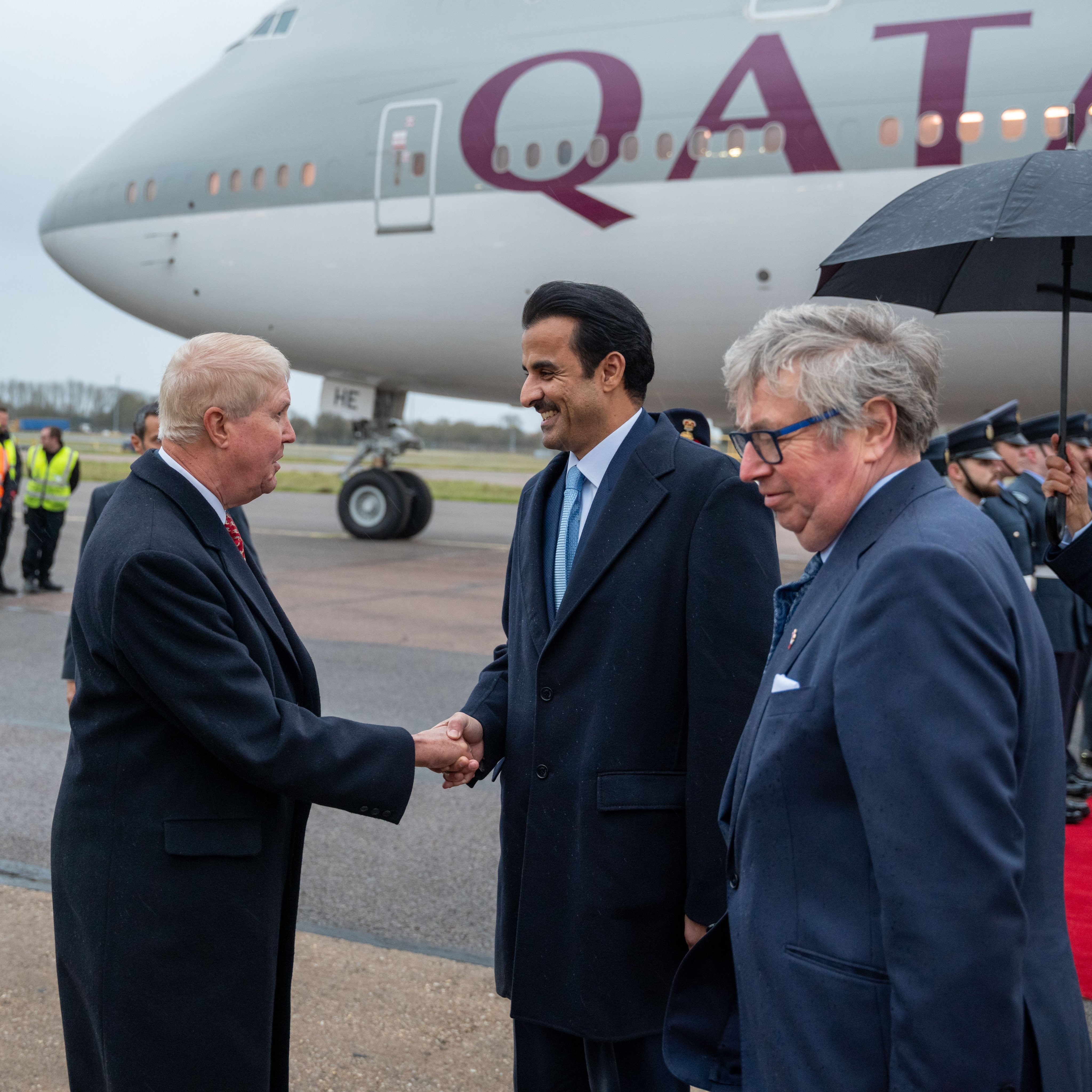 وصل أمير دولة قطر وحرمه اليوم إلى العاصمة لندن في زيارة دولة إلى المملكة المتحدة، تلبية لدعوة من الملك تشارلز الثالث.