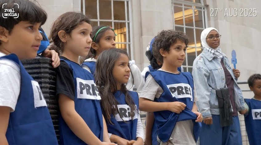 شهدت لندن، الاثنين (25 أغسطس/آب)، احتجاجًا نظمته مجموعة "آباء من أجل فلسطين" Parents For Palestine أمام مقر هيئة الإذاعة البريطانية BBC، حيث شارك فيه أطفال ارتدوا سترات الصحافة ورددوا رسائل تطالب بكشف الحقيقة حول ما يجري في غزة.