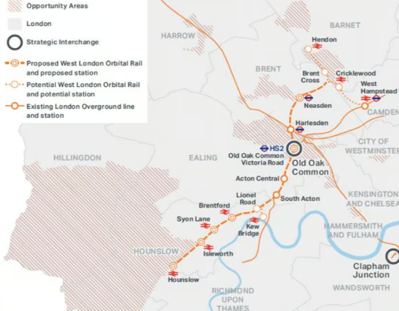 ويُعد خط غرب لندن المداري أحد المشاريع الثلاثة الكبرى التي تسعى هيئة النقل في لندن للحصول على دعم وزيرة المالية، راشيل ريفز، لتمويلها ضمن ميزانية العام المقبل. وفي حال الموافقة، سيربط الخط بين هونسلو وهيندون عبر محطة أولد أوك كومون، ليصبح الفرع السابع لشبكة أوفرغراوند.