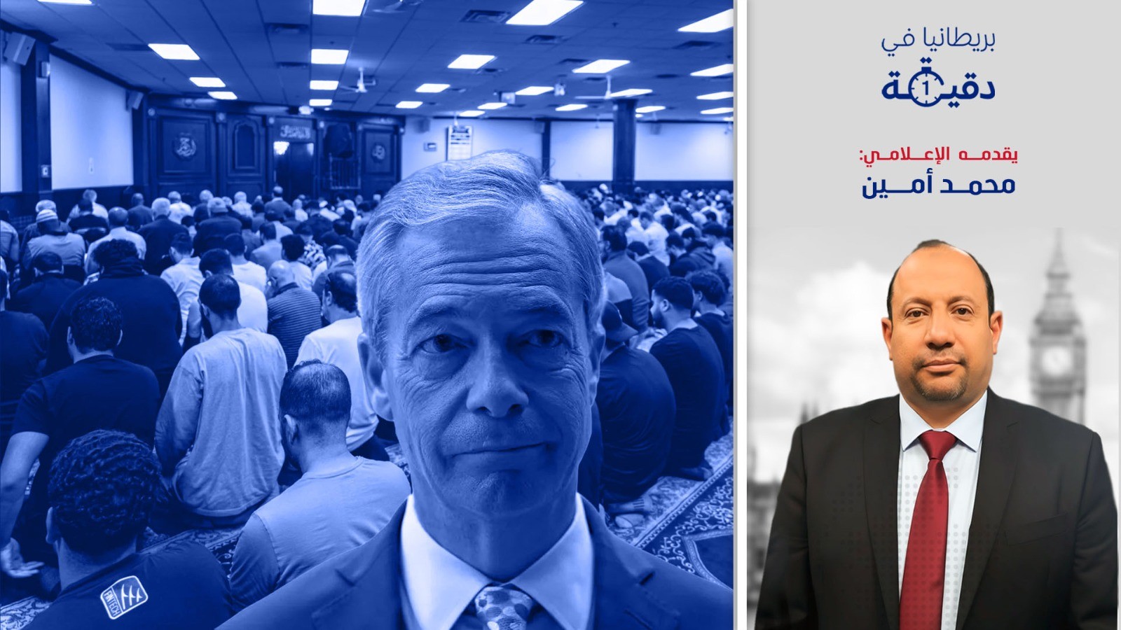خصّص الإعلامي محمد أمين حلقة جديدة من برنامجه "بريطانيا في دقيقة" للحديث عن تصريحات نايجل فاراج التي دعا من خلالها إلى حظر التجمعات الدينية الجماعية في الأماكن العامة، وذلك على خلفية الجدل الذي أثارته فعالية رمضانية شهدت صلاة جماعية في ميدان ترافالغار وسط لندن، وشارك فيها عمدة المدينة السير صادق خان.